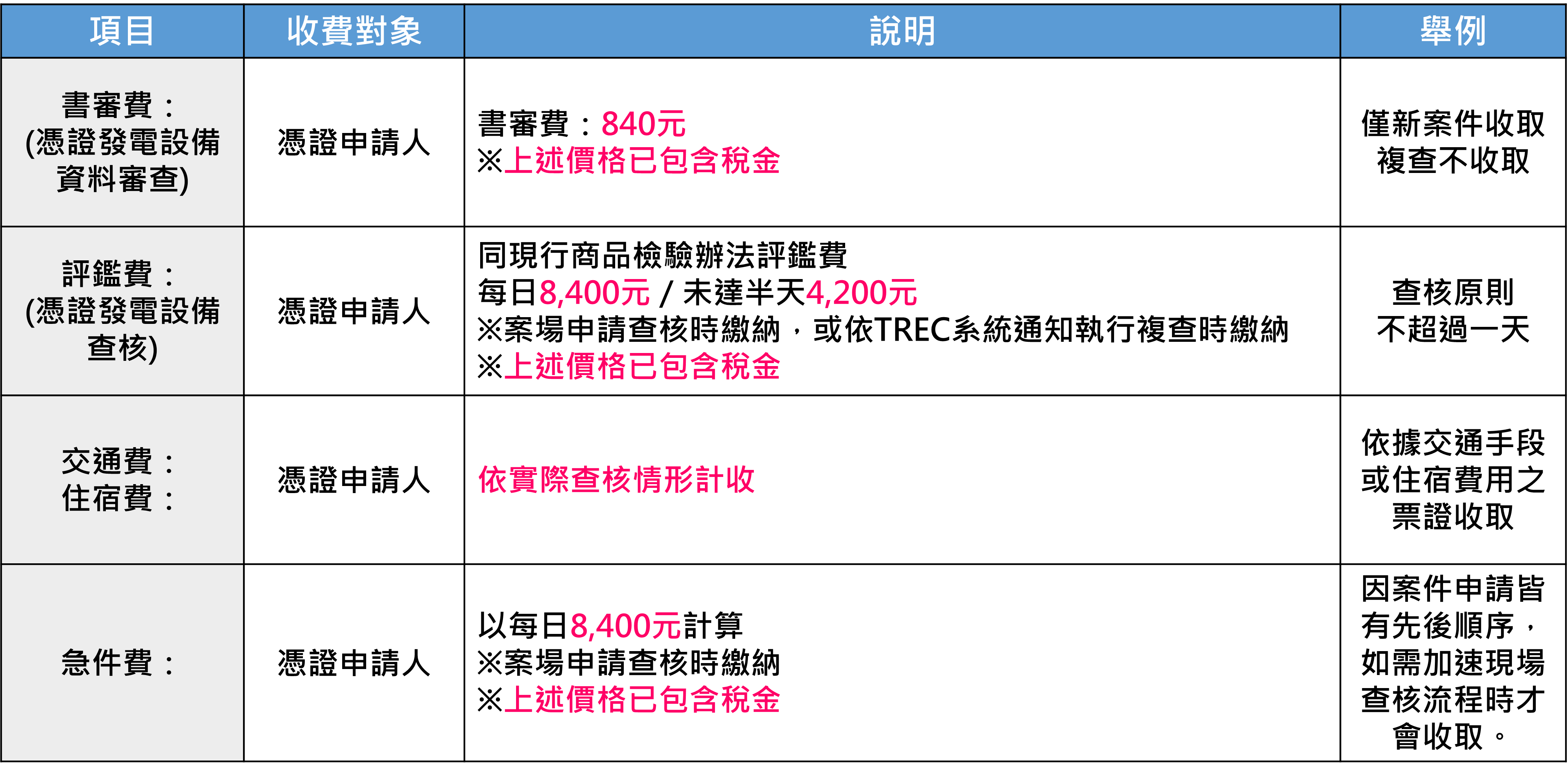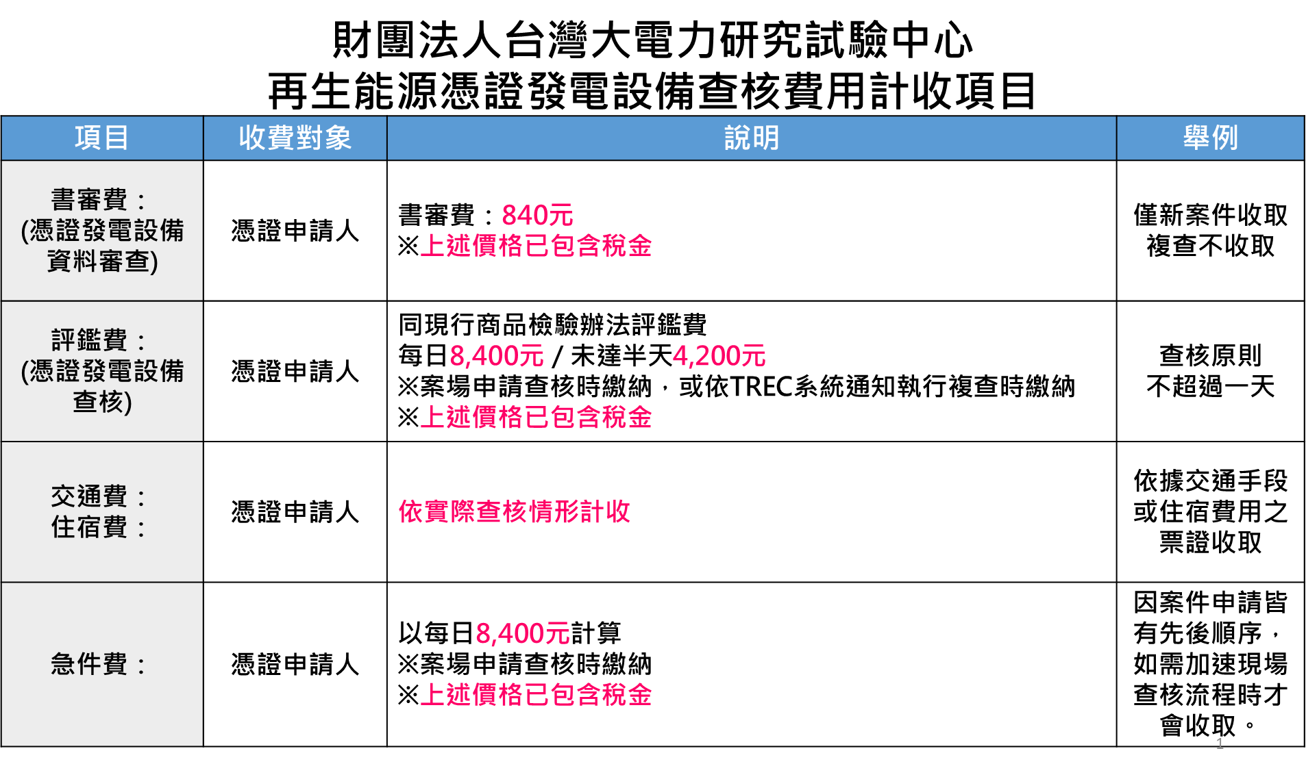 再生能源憑證發電設備查核費用計收項目
